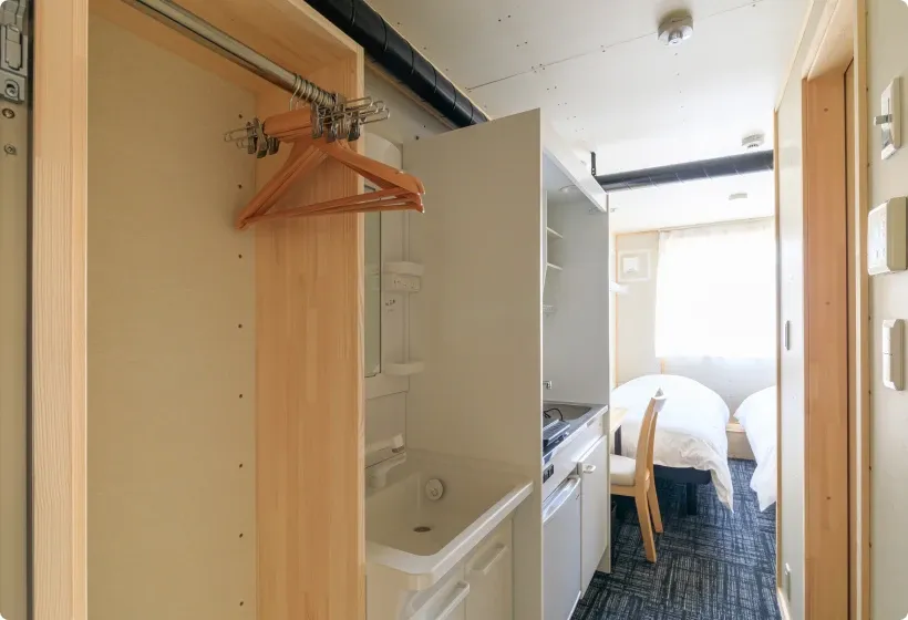 ミニキッチンや独立バス・トイレを備えた客室で、短期滞在から長期利用まで快適に。